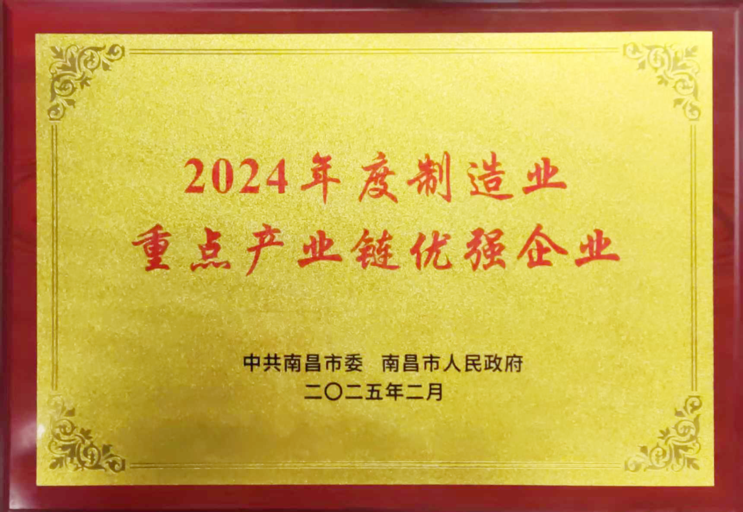 喜报丨公司荣获南昌市“2024年度制造业重点产业链优强企业”荣誉称号