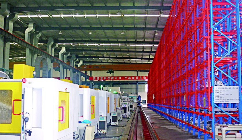 自动化柔性生产线主要由立体库、机器人、导轨、数控加工中心及MES系统组成,可以做到同时用10台加工中心加工不同的精密零件。加工中心总共包含6台普通三轴数铣、4台高速高精度数控加工中心以及大型立体库,其中立体库总共包含885个工装库位,通过生产线智能控制程序控制机器人按生产订单自动从库位中提取需要的工装。少量人工在操作区域装夹,拆卸零件,机器人自动上下料,实现168小时连续工作,大大提高了生产效率,节约了人工成本。目前佳时特既采用传统模式加工也采用智能化加工,通过比较发现一条自动化柔性生产线只需6人操作却能超过传统模式下60人的产能。
